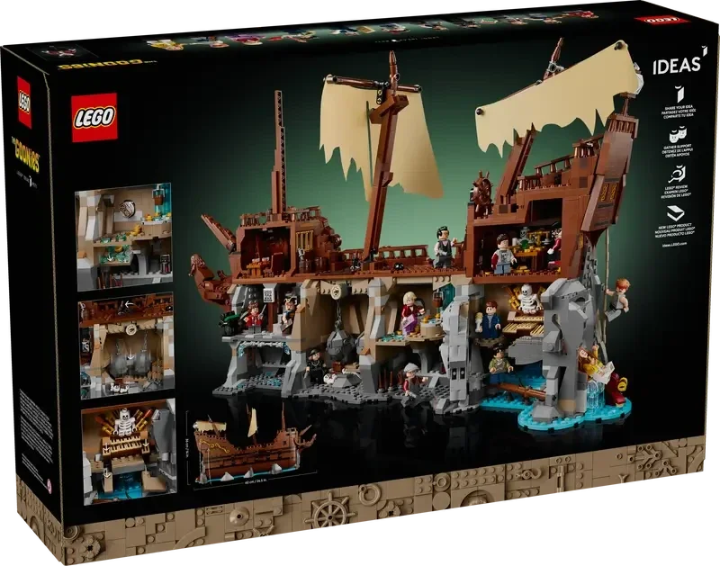 - Diorama – breng een eerbetoon aan een cultklassieker uit de jaren 1980 met deze avontuurlijke LEGO® Ideas De Goonies bouwset voor volwassenen met klassieke scènes in het Inferno piratenschip